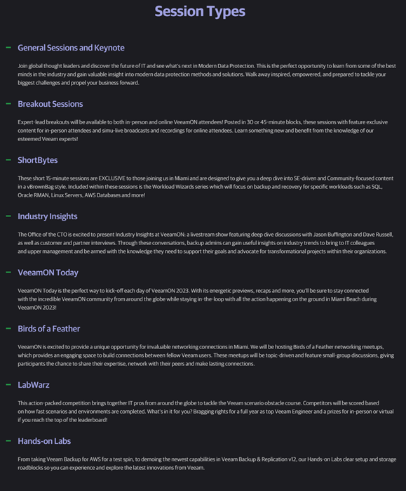 Attending VeeamON is one of the best events if you want to learn more about backup and what Veeam is all about. From user sessions, networking and training this event is packed with something for everyone. I was lucky to be able to attend VeeamON 2022 in Las Vegas last year and thanks to the #Veeam100 program which I am part of we have the luxury of attending VeeamON 2023 in Miami at no cost to us. What an amazing gesture from @Veeam