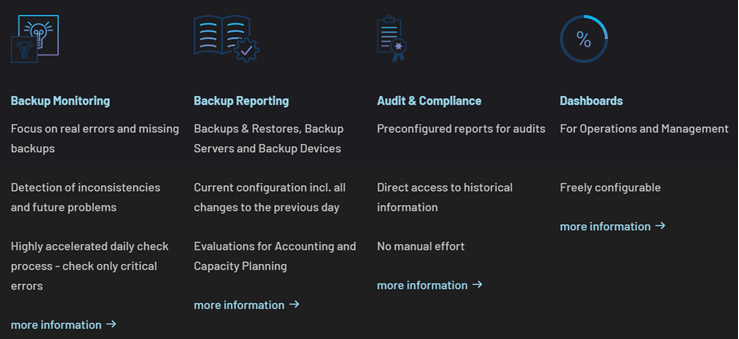 Backup Eagle is used for Backup Monitoring, Reporting, and Audit & Compliance.