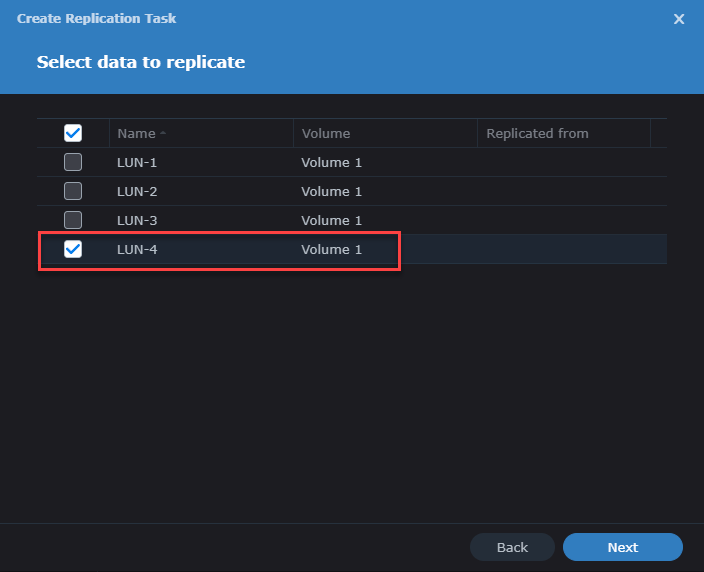 - LUN to replicate