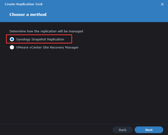 - Replication Method - can use VMware Site Recovery Manager as well as Synology