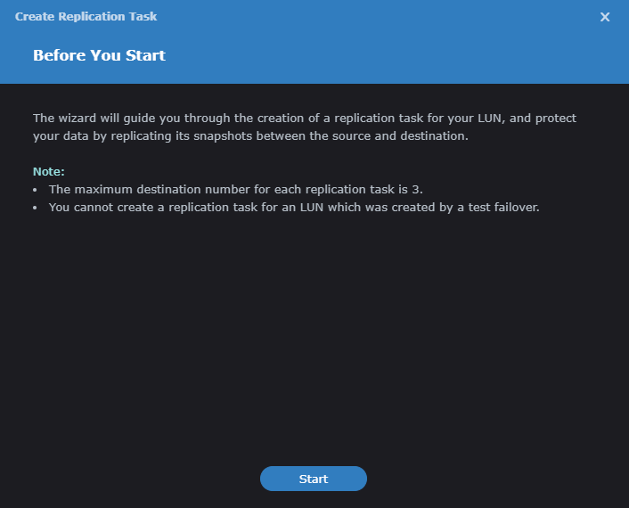 So once you click the create button this will begin the process of creating the Replication for your new LUN -