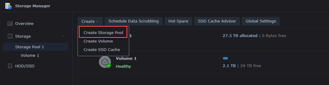 Now you must be using one of the supported NAS devices that allow you to use SSD as a Storage Pool as many just allow SSD drives to be used as Cache within a Storage Pool - Supported NAS Devices. You must be using a device on the supported list otherwise the only option you will have is to create an SSD Cache. I will discuss SSD Cache vs Storage Pools in my next article.