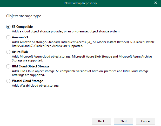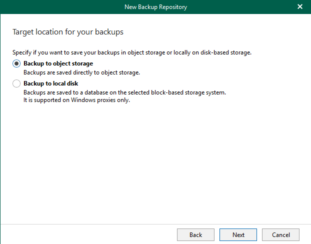 - Object Storage - similar to Veeam Backup & Replication now