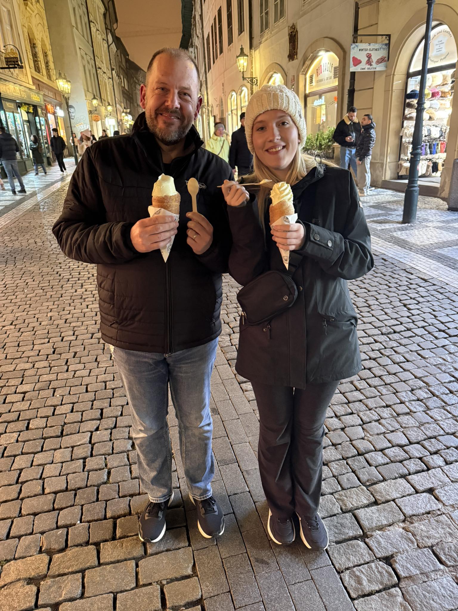 Lastly, I will leave you with some more photos I took while in Prague, walking around the wonderful city, especially at night. My daughter and I even tried the chimney ice cream this time around. :)